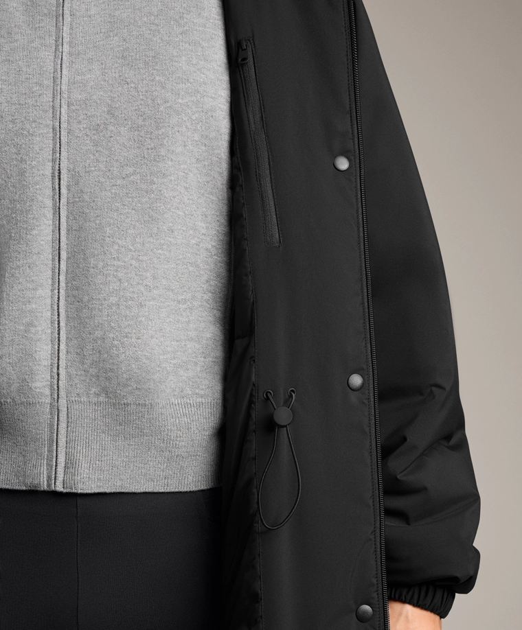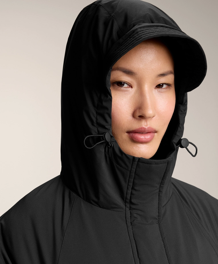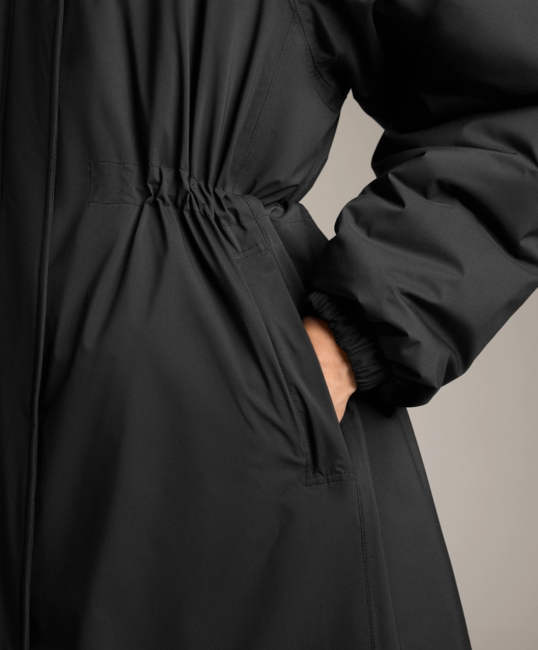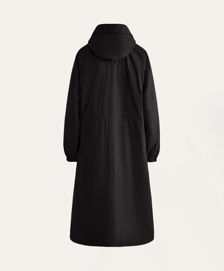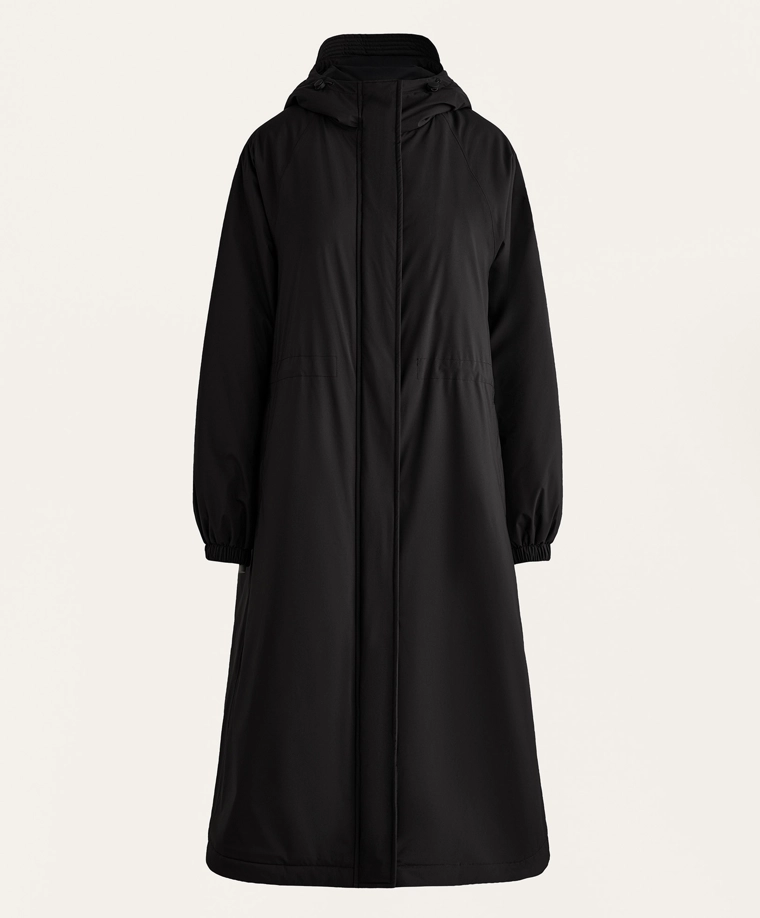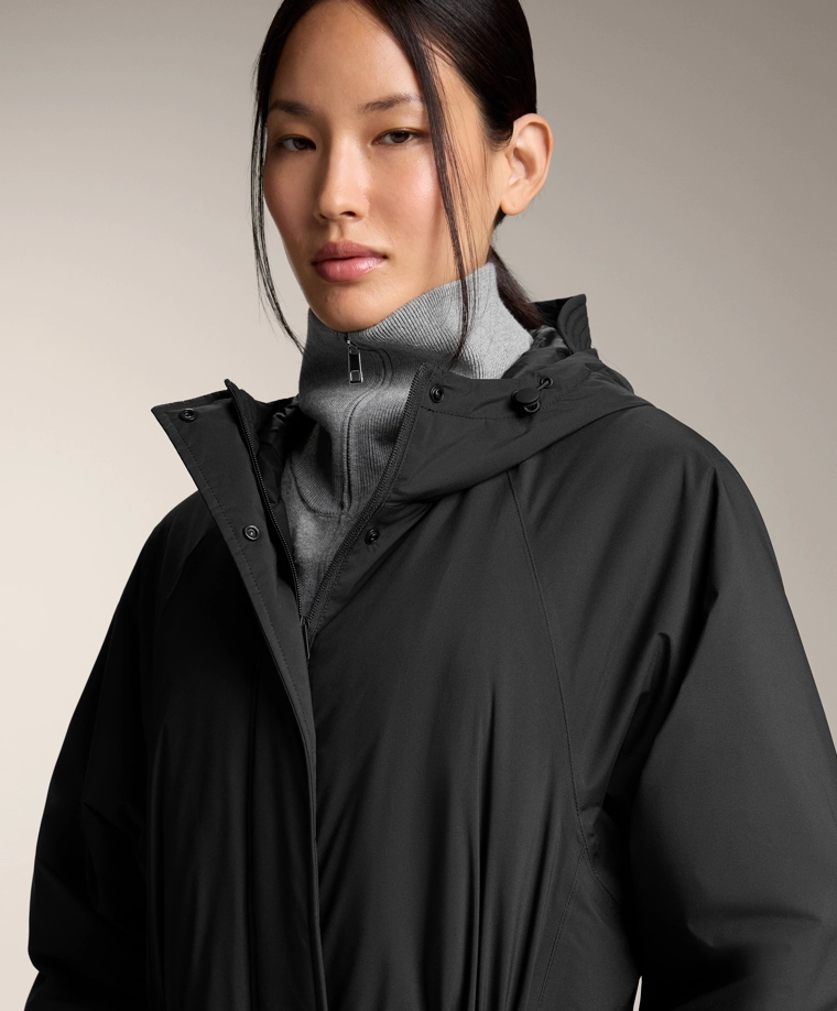 Длинная водонепроницаемая теплая куртка с подкладкой ThindownTM. Подкладка ThindownTM состоит из 80% пуха и 20% пера и покрыта слоем, уменьшающим его объем, — в ней сочетается легкость и высокий теплоизоляционный эффект.Модель застегивается спереди на молнию и кнопки с магнитной застежкой. Пояс-кулиска со шнурком внутри. Высокий воротник и регулируемый капюшон. Боковые и внутренние карманы на подкладке с начесом. Манжеты на отделке рукавов. Ультралегкая, воздухопроницаемая и приятная мягкая ткань. Ветрозащитная ткань с запаянными швами.Ткань выдерживает давление воды ≥10 000 мм. Чтобы повысить степень водонепроницаемости, одежда изготовлена с герметичными застежками-молниями и запаянными швами (по всему изделию или в наиболее важных местах). Изделие защищает от холода при температуре от +3 ºC (низкий уровень активности) до -27 ºC (умеренная активность), что было подтверждено испытаниями в лабораторных условиях с имитацией ветра скоростью 0,4 м/с (одежда на испытуемом: футболка с длинным рукавом и высоким воротником, брюки, нижнее белье, носки, обувь, перчатки и вязаный головной убор.